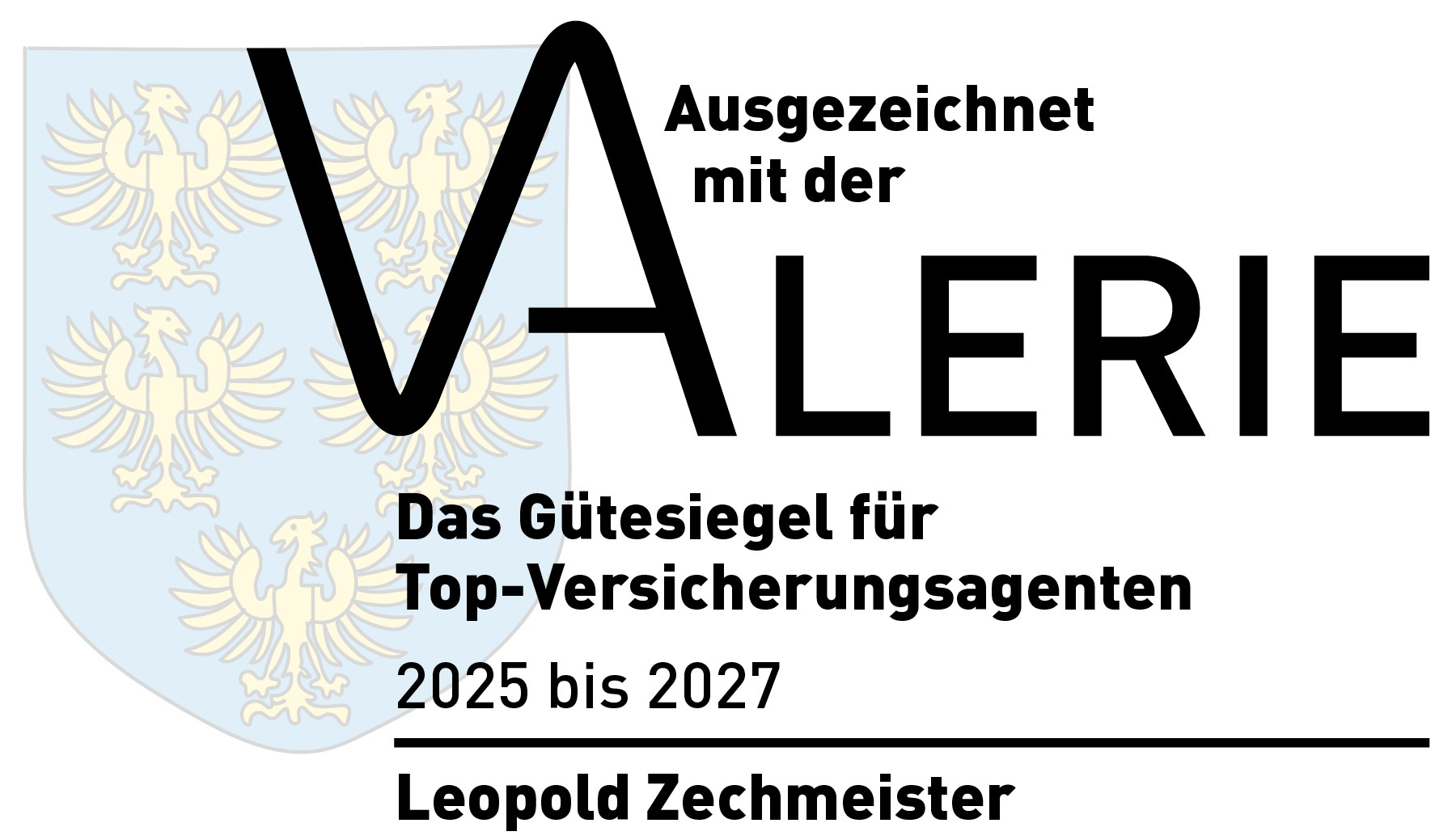 Dass Qualität und Engagement sich lohnen, zeigt die Auszeichnung mit der VALERIE – dem Gütesiegel für Top-Versicherungsagent:innen 2025–2027. Dieses Siegel steht für herausragende Beratungsqualität, Kundenzufriedenheit und Integrität – Werte, die Leopold Zechmeister seit Jahren konsequent lebt.